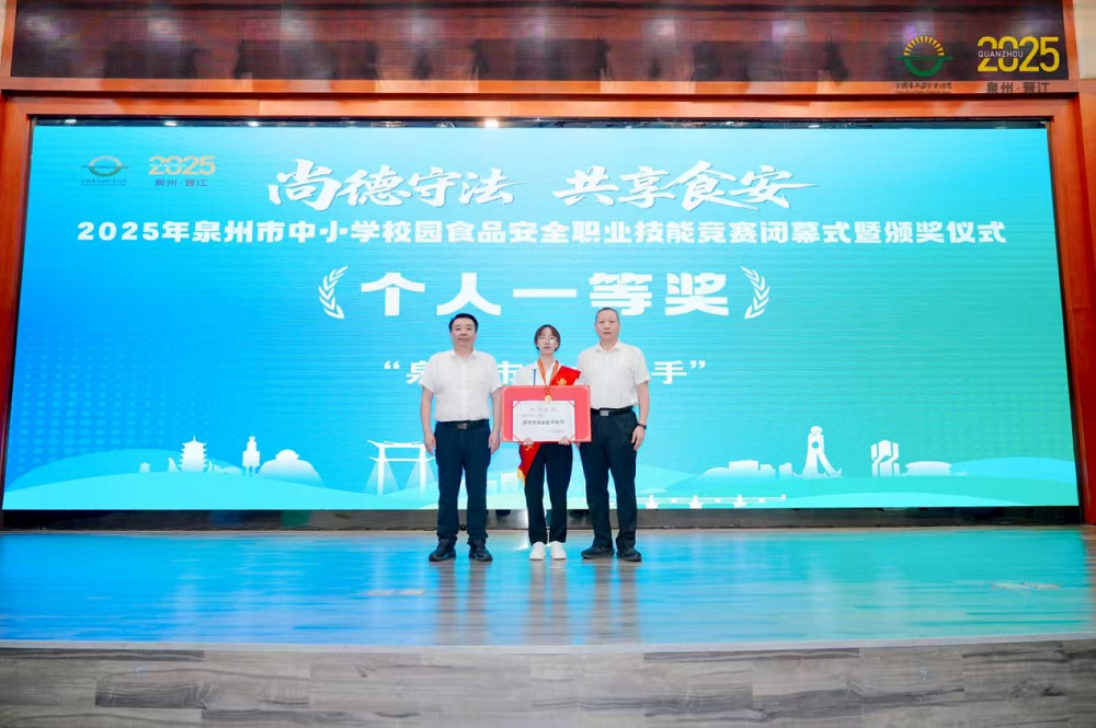 泉州市市场监管局副局长刘家旺正在总结讲话中强调,校园食物安满是沉中之沉,要以此次竞赛为契机,持续强化部分协同,建牢认识防地、提拔专业能力、严酷施行尺度,建立社会共治款式,切实守护师生“舌尖上的平安”。为泉州市校园食物平安工做注入新动能。下一步,市场监管部分将继续联袂各方,鞭策校园食安管理能力持续提拔,为青少年健康成长保驾护航。
