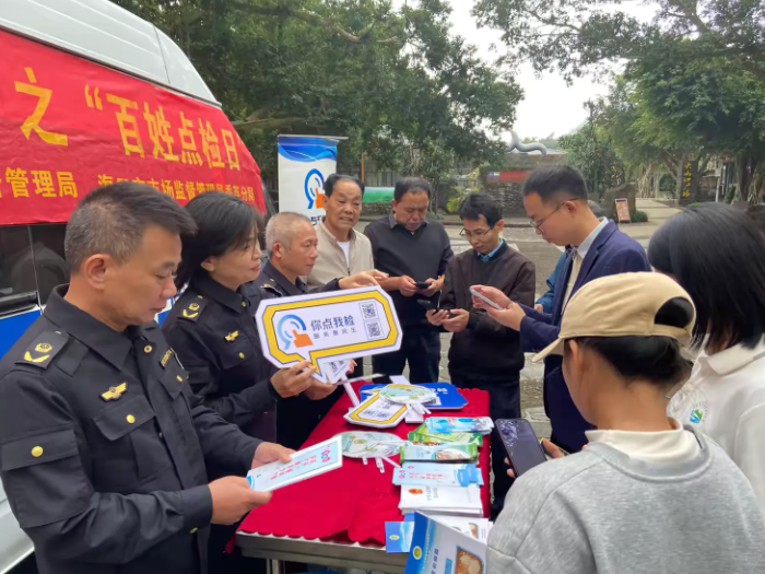 春节前夜,为进一步提拔食物抽检工做参取度,加强人平易近群众对年货食物平安的获得感和对劲度,营制食物平安社会共治共享款式,海口市市场监视办理局正在区火山口地质公园开展年货购食物平安“你点我检”之“苍生点检日”宣传勾当。